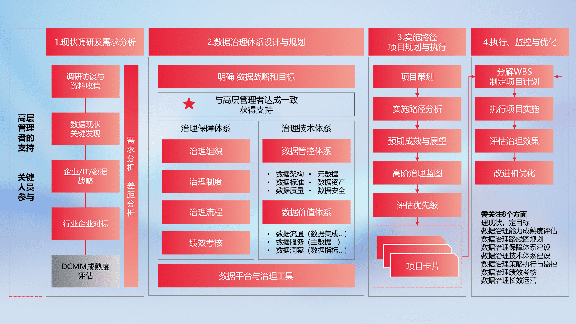 制定并执行统一的数据标准,,规范数据定义和格式,,消除冗余和不一致性,,,实现跨部门和跨系统的数据一致性,,,,为企业提供标准化的数据基础。。